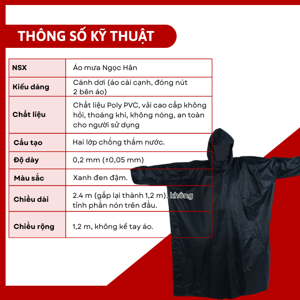 Thông số áo mưa cánh dơi Ngọc Hân