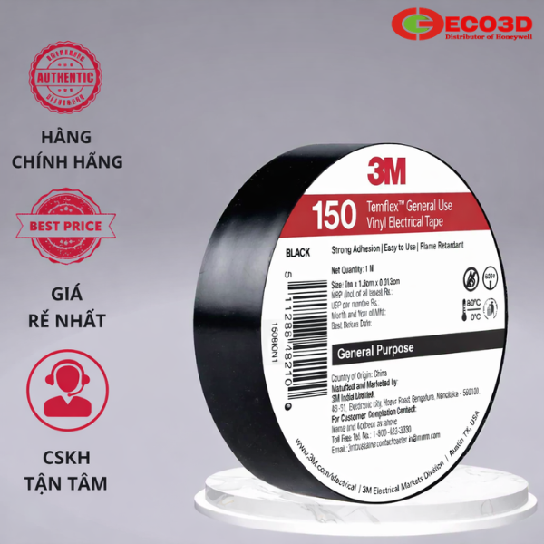 - Tên sản phẩm: Băng keo điện PVC 3M Temflex 150