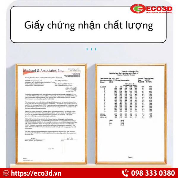 - Tiêu chuẩn: EN352-1:2020; ANSI S3.19-1974