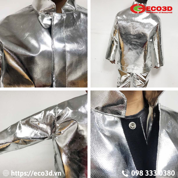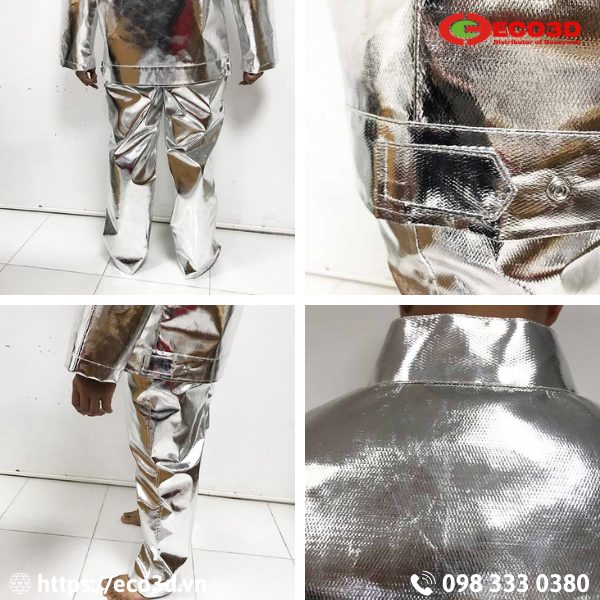Sản phẩm sử dụng vật liệu sợi thủy tinh tráng nhôm (aluminized fiberglass) giúp phản xạ nhiệt bức xạ hiệu quả, giảm lượng nhiệt truyền đến cơ thể người lao động. Thiết kế dạng bộ gồm áo khoác và quần rời, tạo sự linh hoạt khi làm việc trong môi trường khắc nghiệt.