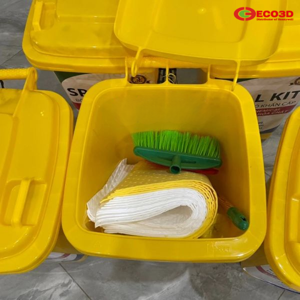 Bộ kit tích hợp vật tư thấm hút, dụng cụ thu gom, trang bị bảo hộ cá nhân và thùng chứa chuyên dụng, giúp tối ưu thời gian xử lý và giảm thiểu thiệt hại.