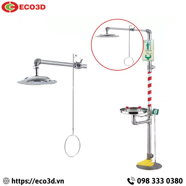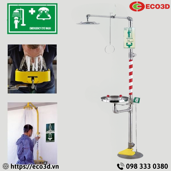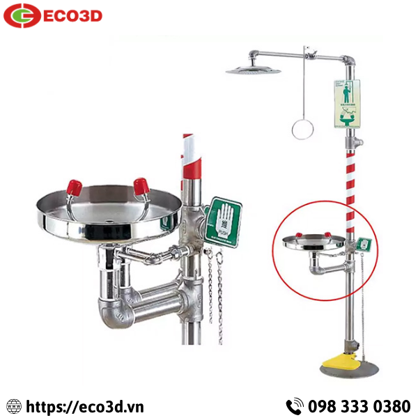 Sản phẩm tích hợp cả chức năng rửa mắt và tắm toàn thân, giúp xử lý nhanh khi xảy ra sự cố, đảm bảo an toàn cho người lao động trong các tình huống khẩn cấp.