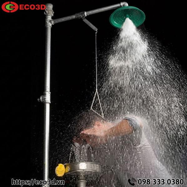 Thiết kế tích hợp giúp người dùng có thể rửa mắt hoặc tắm ngay lập tức khi gặp sự cố, giảm thiểu tổn thương do hóa chất hoặc bụi độc.