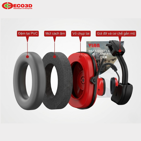 Chụp tai được thiết kế dạng treo, dễ dàng lắp vào mũ bảo hộ, giúp tối ưu không gian và không gây vướng víu khi làm việc.