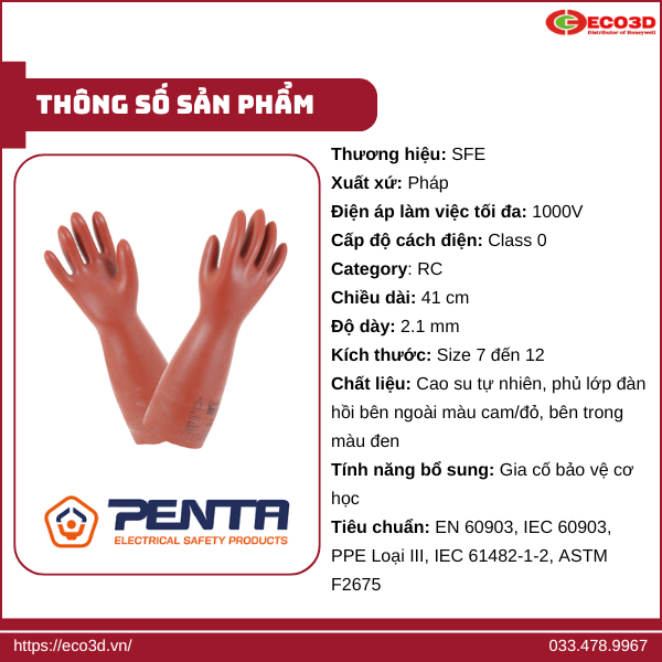 Thông số kỹ thuật găng tay cách điện SFE 1000V composite