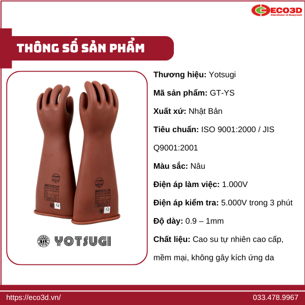 Thông số kỹ thuật cơ bản găng tay cách điện hạ thế Yotsugi