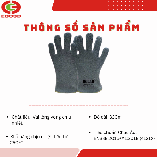 Găng tay chịu nhiệt VIAN VA-V25032 là sản phẩm bảo hộ chuyên dụng dành cho môi trường làm việc có nhiệt độ trung cao như bếp công nghiệp, chế biến thực phẩm và cơ khí nhẹ. Sản phẩm được làm từ vải lông vòng chịu nhiệt, giúp cách nhiệt hiệu quả và hạn chế truyền nhiệt trực tiếp vào tay khi tiếp xúc với bề mặt nóng.