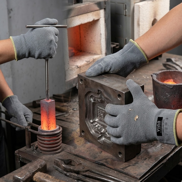 Ứng dụng trong cơ khí nhẹ và gia công đơn giản, giúp bảo vệ tay khi tiếp xúc với bề mặt nóng hoặc thiết bị gia nhiệt. Điều này giúp người lao động làm việc an toàn và hiệu quả hơn.