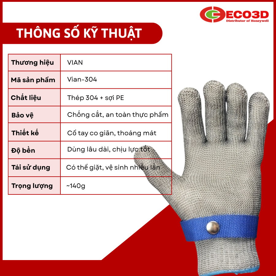 2. Thông số kỹ thuật của găng tay chống cắt Vian 304