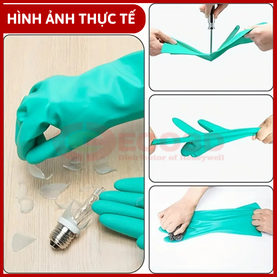 Khử trùng thiết bị, sàn và bề mặt: Găng tay có khả năng chống hóa chất EN 374 Loại B, phù hợp cho các công việc khử trùng, ngăn hóa chất thấm vào da. Độ bám tốt giúp cầm nắm chắc dụng cụ và thiết bị vệ sinh.