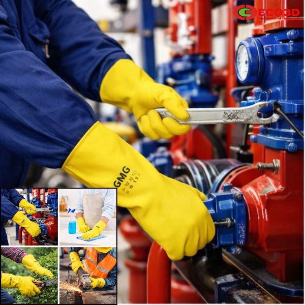 Ngoài gia đình, găng tay gia dụng Latex GMG còn được sử dụng trong các công việc nhẹ như lắp ráp linh kiện, vệ sinh thiết bị hoặc bảo dưỡng đơn giản trong ngành cơ khí – điện tử.