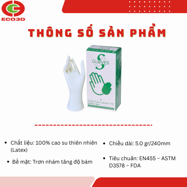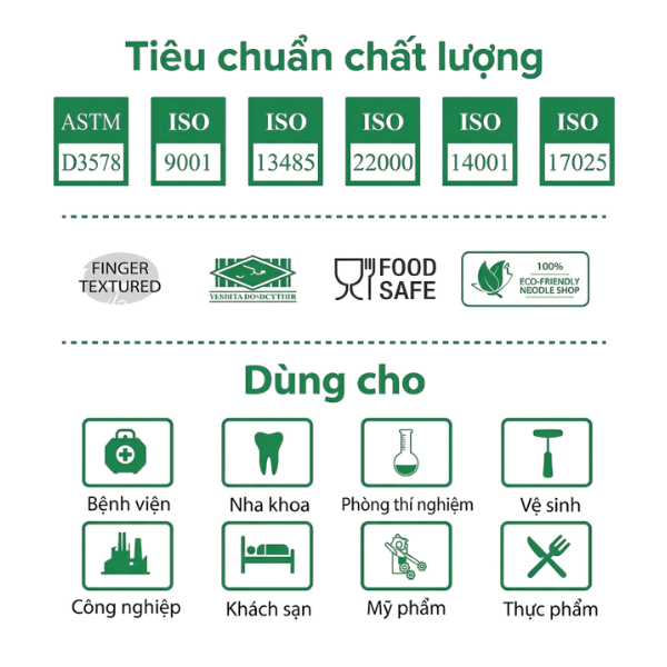 | Tiêu chuẩn | EN455 ASTM D3578 FDA |