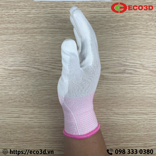 1. Giới thiệu găng tay sợi trắng phủ PU viền hồng