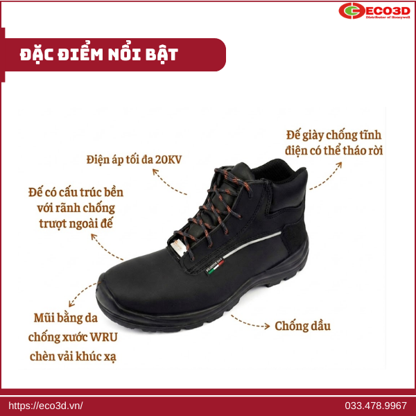 Phần thân giày được làm từ da cách điện chất lượng cao, mang lại độ bền vượt trội, đồng thời tăng khả năng chống thấm và chống mài mòn, giúp giày hoạt động ổn định trong nhiều điều kiện môi trường khác nhau. Với trọng lượng khoảng 625g (size 42), giày mang lại cảm giác nhẹ và thoải mái, giảm mỏi chân khi phải làm việc trong thời gian dài. Bên cạnh đó, sản phẩm còn đạt các tiêu chuẩn an toàn quốc tế EN ISO 20345:2011 và ASTM F2412, đảm bảo khả năng bảo vệ tối đa cho người sử dụng trong môi trường làm việc liên quan đến điện.