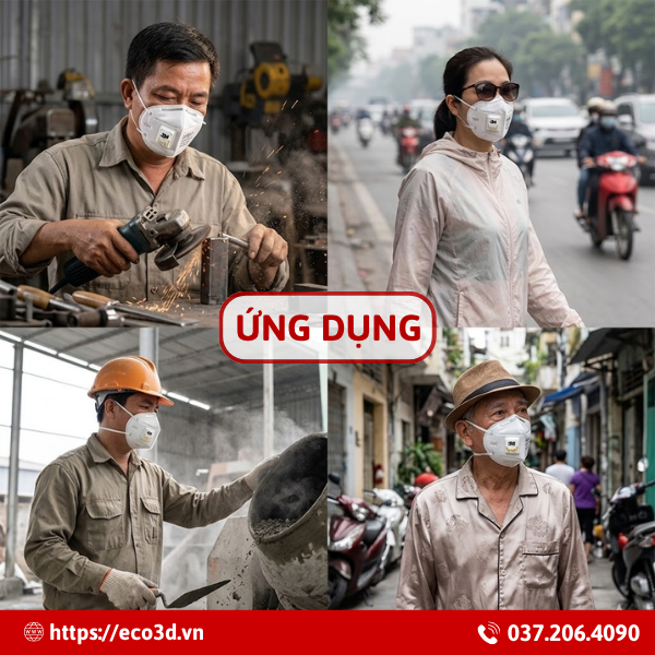 Giúp ngăn bụi mịn, khói xe và ô nhiễm không khí khi di chuyển hoặc làm việc ngoài trời.