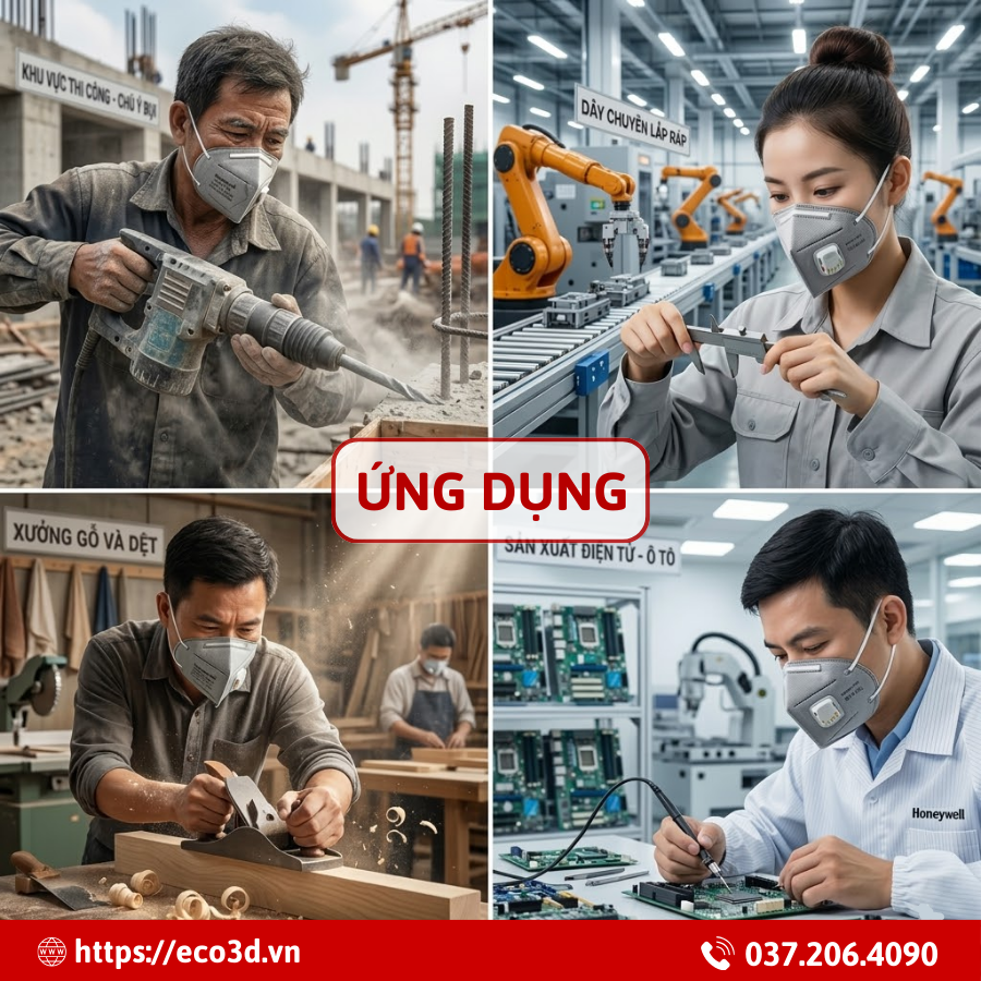 Bảo vệ hệ hô hấp khỏi bụi công nghiệp và các hạt vật liệu nhỏ trong môi trường làm việc.