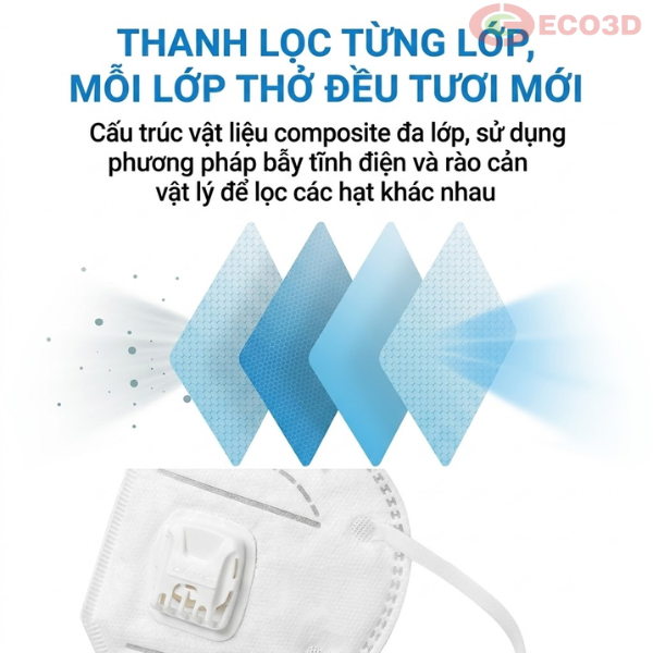 Sử dụng vật liệu lọc tiên tiến giúp giữ lại các hạt bụi siêu nhỏ nhưng vẫn đảm bảo độ thông thoáng khi hít thở.