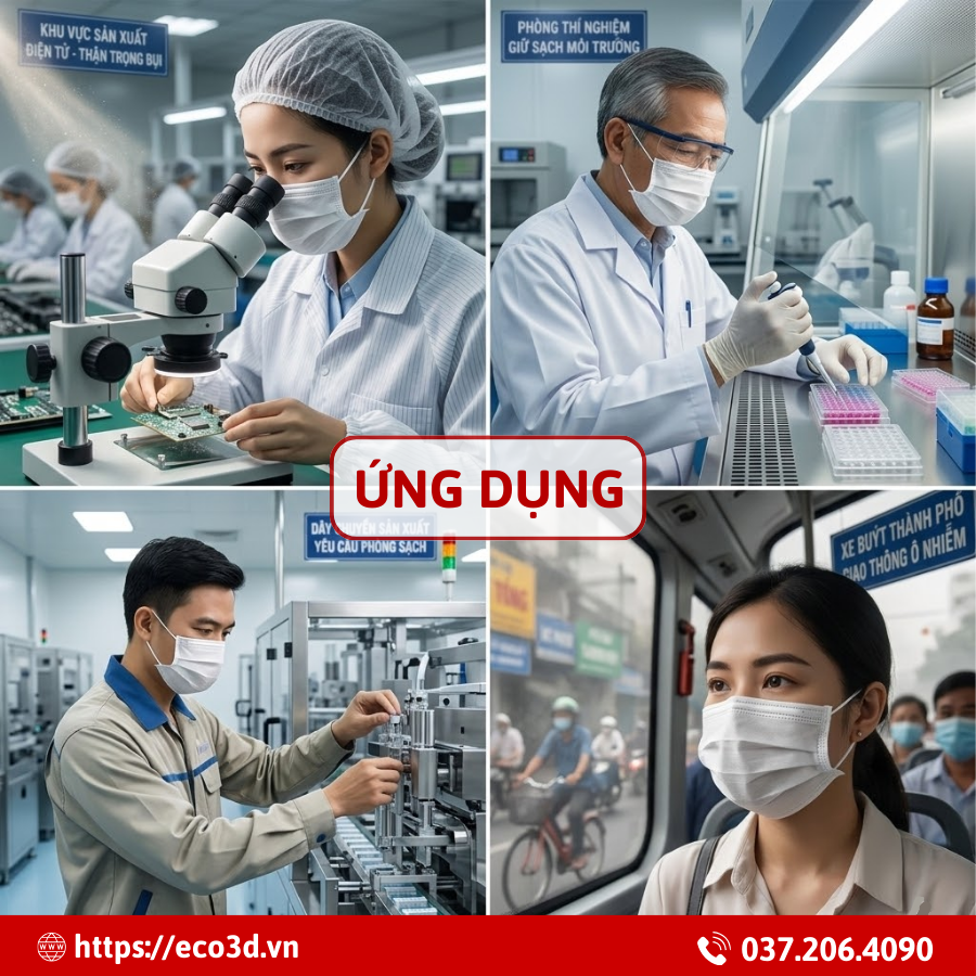 Khẩu trang phòng sạch 3 lớp hiện được phân phối tại ECO3D, đơn vị cung cấp thiết bị bảo hộ lao động uy tín với nhiều sản phẩm chính hãng và đầy đủ chứng nhận chất lượng.