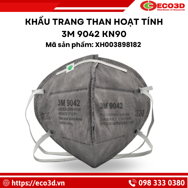 Khẩu trang than hoạt tính 3M 9042 KN90 hiện được phân phối tại ECO3D, đơn vị cung cấp thiết bị bảo hộ lao động uy tín với nhiều sản phẩm chính hãng và đầy đủ chứng nhận chất lượng.