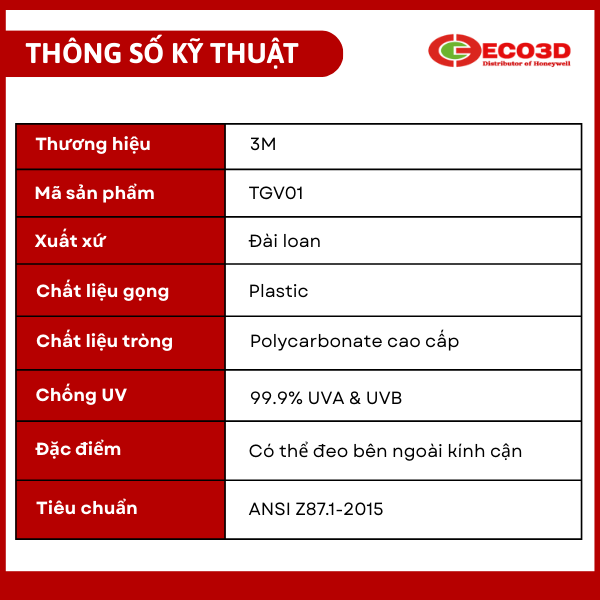 2. Thông số kỹ thuật kính bảo hộ 3M Tour Guard V TGV01