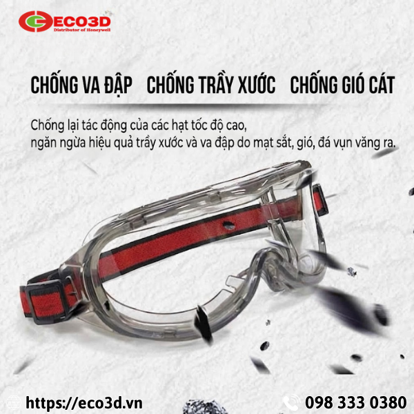 Kính ôm sát khuôn mặt, tạo lớp bảo vệ kín giúp ngăn bụi mịn, giọt bắn và hóa chất xâm nhập vào mắt, đặc biệt phù hợp trong môi trường nguy hiểm.