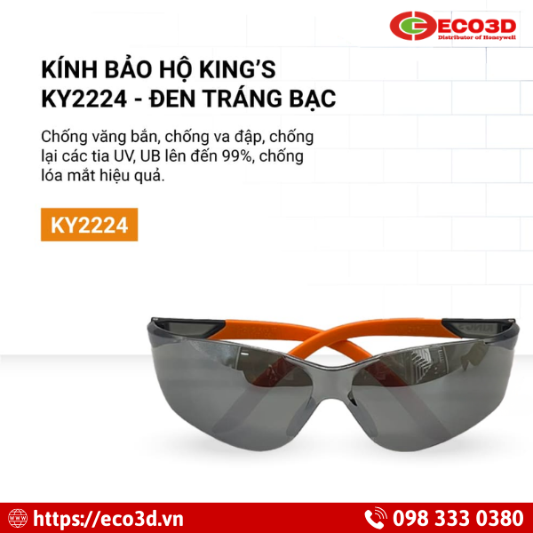 ECO3D chuyên phân phối thiết bị bảo hộ lao động chính hãng, cung cấp kính bảo hộ Kingwear KY2224 -KW đạt tiêu chuẩn quốc tế với chất lượng đảm bảo.