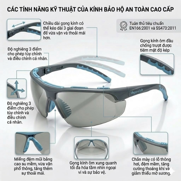 - Tiêu chuẩn: EN166:2001, SS473:2011