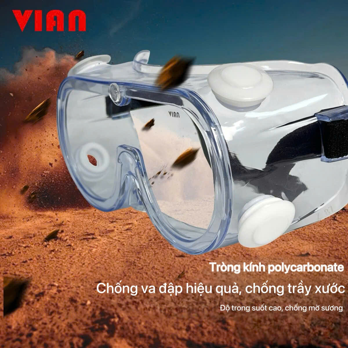 Dù đã có van thông gió, nhà sản xuất Vian vẫn cẩn thận trang bị thêm lớp phủ chống đọng sương Anti-Fog cao cấp lên cả hai mặt của tròng kính Polycarbonate. Sự kết hợp kép này đảm bảo kính tuyệt đối không bị mờ đục do hơi thở, mồ hôi cơ thể hay sự chênh lệch nhiệt độ môi trường. Người thợ sẽ luôn có một tầm nhìn sáng rõ để thực hiện các thao tác đòi hỏi tính chính xác cao mà không cần phải liên tục tháo kính ra lau chùi.