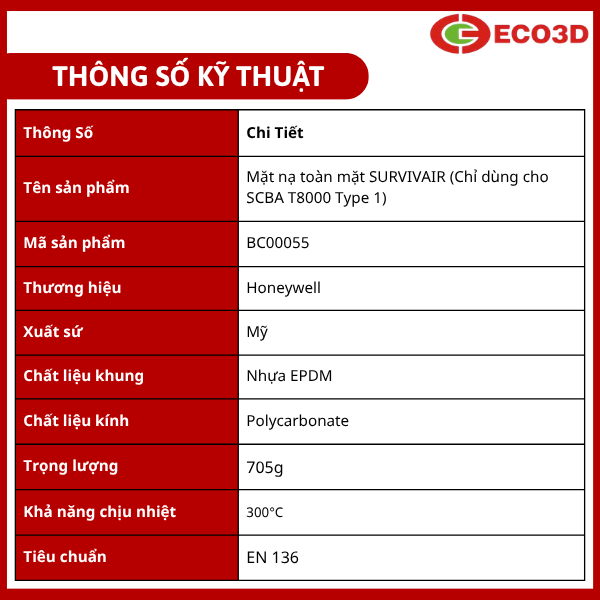 Mặt nạ toàn mặt SURVIVAIR hiện được phân phối tại ECO3D, đơn vị cung cấp thiết bị bảo hộ lao động uy tín với nhiều sản phẩm chính hãng và đầy đủ chứng nhận chất lượng.
