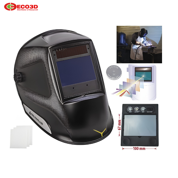Sản phẩm sử dụng kính hàn điện tử LCD có khả năng tự động điều chỉnh độ tối từ DIN 5 đến DIN 13, phù hợp cho nhiều phương pháp hàn như MIG, TIG, MAG và Plasma. Điều này giúp bảo vệ mắt hiệu quả trước tia sáng mạnh và tia UV.