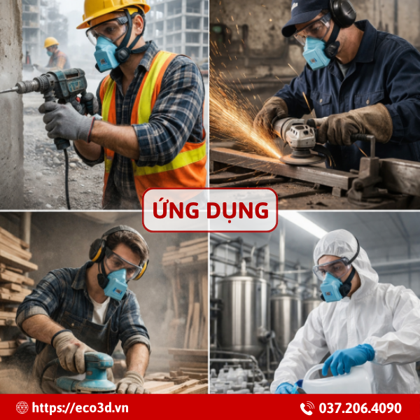 Sử dụng để bảo vệ sức khoẻ trong các ngành công nghiệp có môi trường làm việc nhiều bụi bẩn từ các loại hạt, khói bụi như: Dầu khí, đóng tàu, cảng – Ô tô, xe máy, nhựa, gỗ, kim loại – Giày da, may mặc, nhuộm – Thực phẩm, thủy sản, thức ăn gia súc – Xi măng, xây dựng, hóa chất, phân bón,...