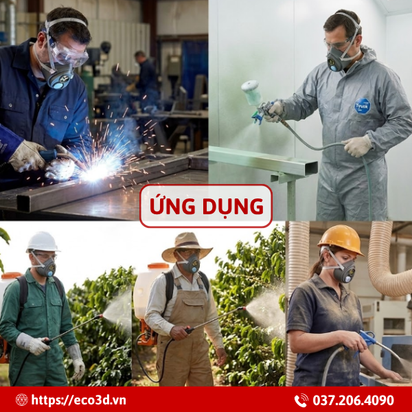 Phù hợp sử dụng trong các ngành như xây dựng, cơ khí, sản xuất và nhà máy công nghiệp – nơi có nhiều bụi và khí độc.