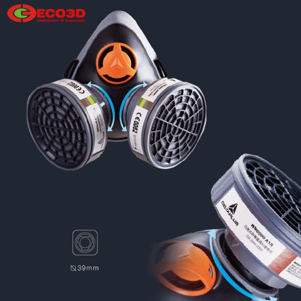 Mặt nạ phòng độc Deltaplus M6400 sử dụng hệ thống 2 phin lọc giúp nâng cao hiệu suất lọc khí và phân bố đều luồng khí hít vào, giúp người dùng dễ thở hơn và tăng độ an toàn khi làm việc trong môi trường ô nhiễm.