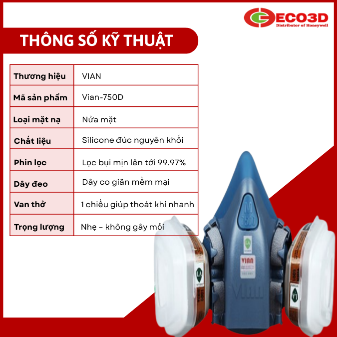 Trong các môi trường làm việc có bụi mịn, hơi hóa chất, khí độc hoặc mùi khó chịu, việc bảo vệ đường hô hấp là yếu tố tối quan trọng. Mặt nạ phòng độc Vian 750D được thiết kế nhằm cung cấp giải pháp lọc khí chuyên nghiệp – an toàn – thoải mái cho người lao động.