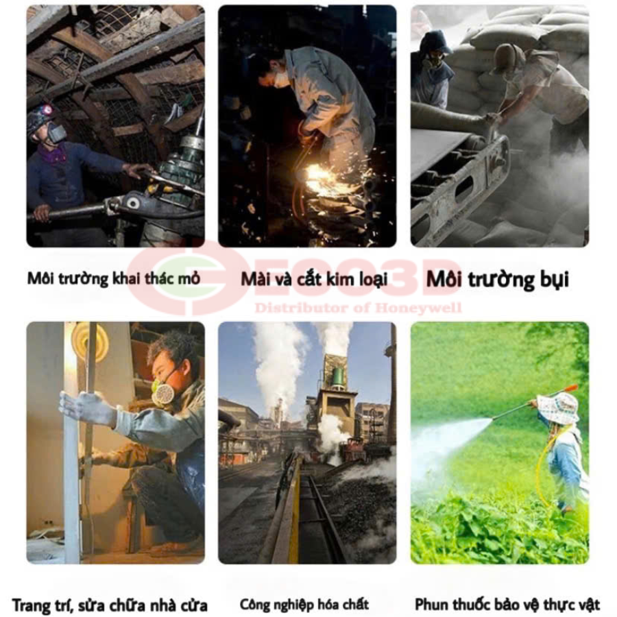 - Khả năng lọc: Lọc hơi hữu cơ, dung môi, sơn, Lọc khí độc nhẹ - nặng tùy phin sử dụng, Lọc bụi mịn PM2.5 – bụi công nghiệp, Hạn chế bắn tóe hóa chất vào mắt và mặt