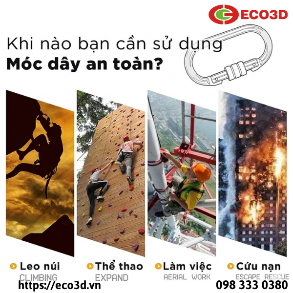 Móc khóa leo núi chữ D là thiết bị chuyên dụng dùng trong leo núi, công việc trên cao, cứu hộ và các hoạt động yêu cầu kết nối an toàn.