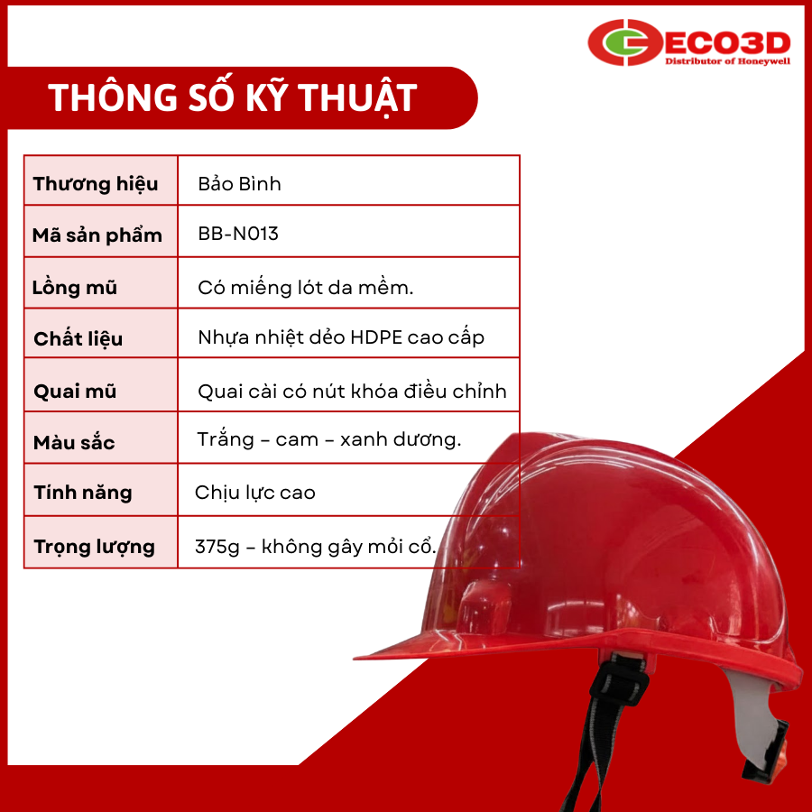 ECO3D là nhà phân phối cấp 1 chính hãng các sản phẩm mũ bảo hộ Bảo Bình, cam kết mang đến sản phẩm chất lượng – đầy đủ chứng từ – giá tốt nhất thị trường.