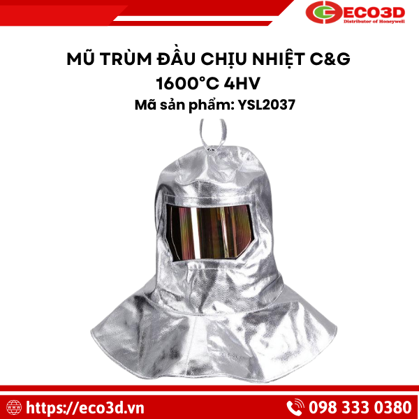 Mũ trùm đầu chịu nhiệt C&G 1600°C 4HV là trang bị bảo hộ chuyên dụng dành cho môi trường công nghiệp có nhiệt độ cao và nguy cơ văng bắn kim loại nóng chảy. Sản phẩm bao phủ toàn bộ vùng đầu, cổ và một phần vai, giúp tăng cường khả năng bảo vệ trước nhiệt bức xạ mạnh.
