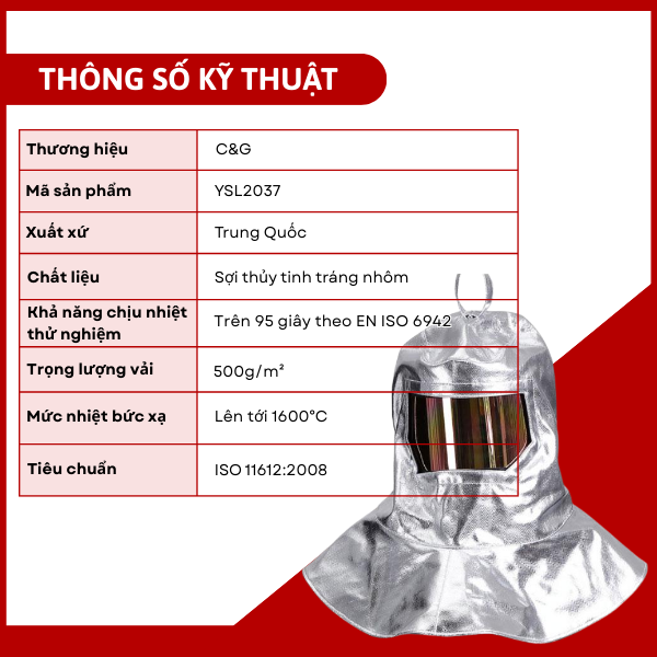 Thông số mũ trùm đầu chịu nhiệt C&G 1600°C 4HV