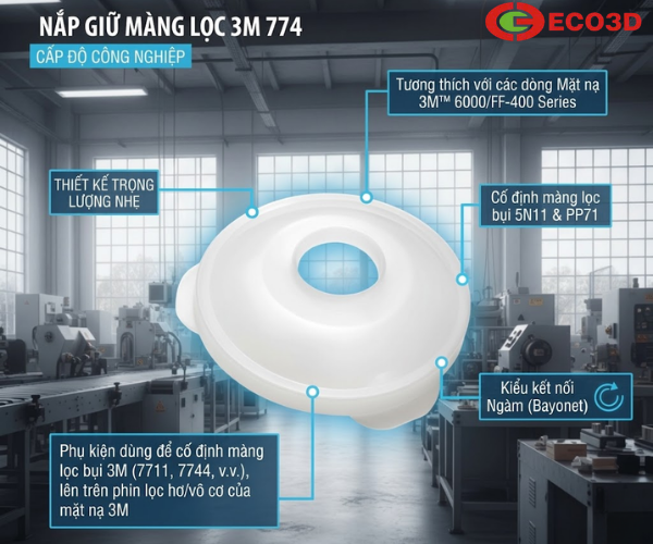 Nắp giữ 3M-774 hiện được phân phối tại ECO3D, đơn vị cung cấp thiết bị bảo hộ lao động uy tín với nhiều sản phẩm chính hãng và đầy đủ chứng nhận chất lượng.