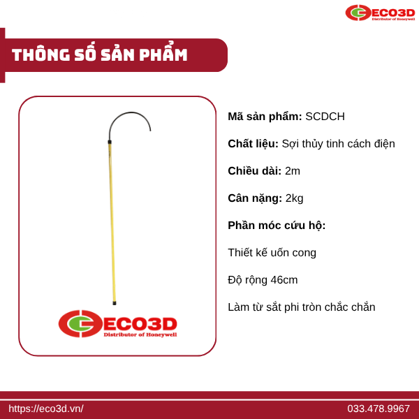 Phần móc cứu hộ được uốn cong với độ rộng 46cm, hỗ trợ kéo hoặc di chuyển nạn nhân ra khỏi khu vực nguy hiểm một cách nhanh chóng và an toàn, hạn chế tối đa tổn thương. Ngoài ra, sợi thủy tinh còn có khả năng chống ăn mòn, chịu lực tốt, giúp sản phẩm có độ bền cao và sử dụng lâu dài ngay cả trong môi trường khắc nghiệt.
