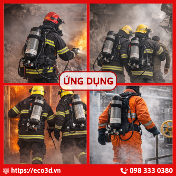 Thiết bị cung cấp nguồn khí sạch liên tục, giúp người dùng hoạt động an toàn trong môi trường thiếu oxy, nhiều khói hoặc khí độc.