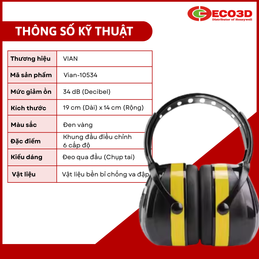 Tai nghe chống ồn cách âm Vian 10534 được thiết kế với các đặc trưng kỹ thuật cao cấp, đảm bảo hiệu quả cách âm và sự tiện lợi trong sử dụng. Dưới đây là các thông số chính: