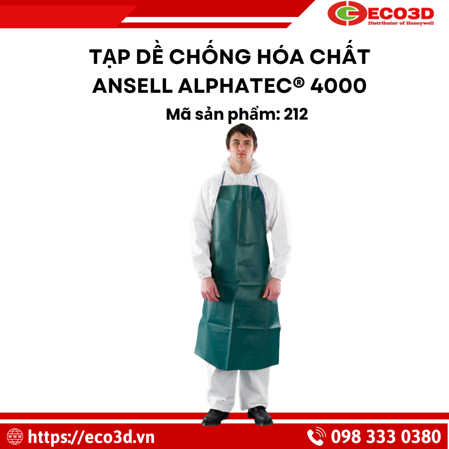 Tạp dề chống hóa chất Ansell AlphaTec® 4000 mã 212 là thiết bị bảo hộ chuyên dụng đến từ thương hiệu Ansell (Úc), được thiết kế để bảo vệ phần thân trước cơ thể khỏi hóa chất lỏng, dung môi, bụi mịn và tác nhân sinh học. Sản phẩm thuộc dòng AlphaTec® 4000 nổi tiếng, đáp ứng các tiêu chuẩn an toàn châu Âu và được sử dụng rộng rãi trong công nghiệp hóa chất, phòng thí nghiệm và môi trường làm việc có rủi ro cao.