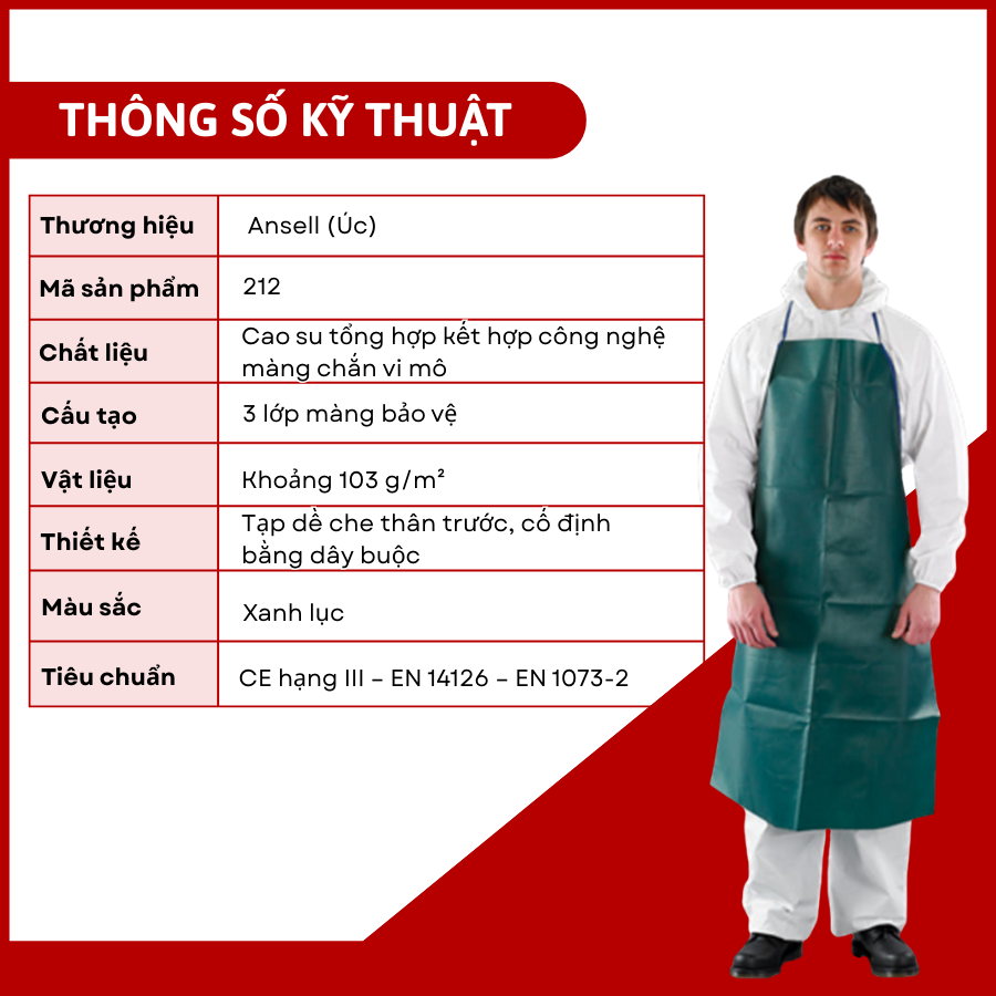 2. Thông số kỹ thuật tạp dề AlphaTec® 4000 mã 212