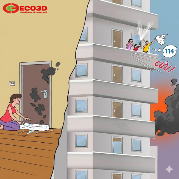 Nếu không thể thoát ra ngoài, cần chèn kín khe cửa bằng khăn ướt để ngăn khói xâm nhập. Sau đó, di chuyển ra ban công hoặc cửa sổ để phát tín hiệu cầu cứu, tuyệt đối không trốn vào nhà vệ sinh kín nếu không có lối thông khí.
