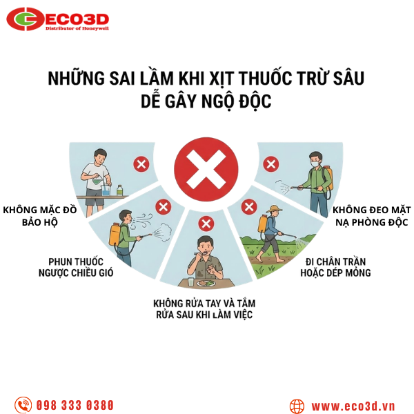 Ngộ độc khi xịt thuốc trừ sâu là rủi ro phổ biến trong nông nghiệp, có thể xảy ra qua đường hô hấp, da hoặc tiêu hóa nếu không sử dụng trang bị bảo hộ phù hợp. Tình trạng này có thể biểu hiện cấp tính như chóng mặt, buồn nôn.