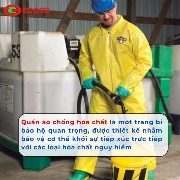 Quần áo chống hóa chất là một trong những trang bị bảo hộ lao động quan trọng, được thiết kế nhằm bảo vệ cơ thể người sử dụng khỏi sự tiếp xúc trực tiếp với các loại hóa chất nguy hiểm. Tùy vào mức độ bảo vệ, sản phẩm có thể chống lại chất lỏng, hơi hóa chất hoặc các hạt bụi độc hại.