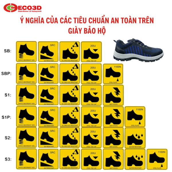 Các ký hiệu SB, S1, S1P thuộc hệ thống tiêu chuẩn EN ISO 20345 – tiêu chuẩn châu Âu áp dụng cho giày bảo hộ lao động. Đây là bộ tiêu chuẩn quy định rõ ràng về khả năng chịu lực, chống va đập, chống đâm xuyên và các tính năng bảo vệ bổ sung khác.