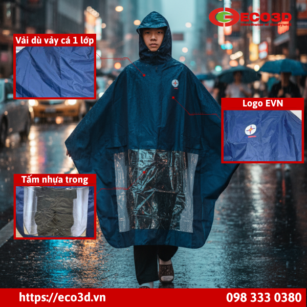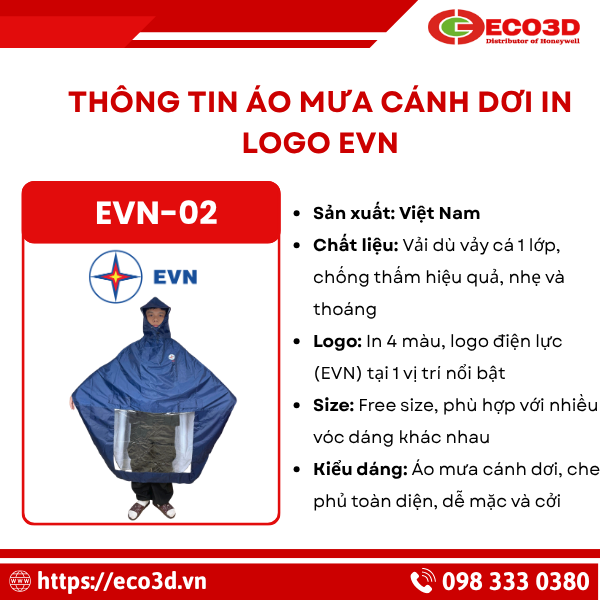 THÔNG SỐ KỸ THUẬT ÁO MƯA CÁNH DƠI IN LOGO EVN